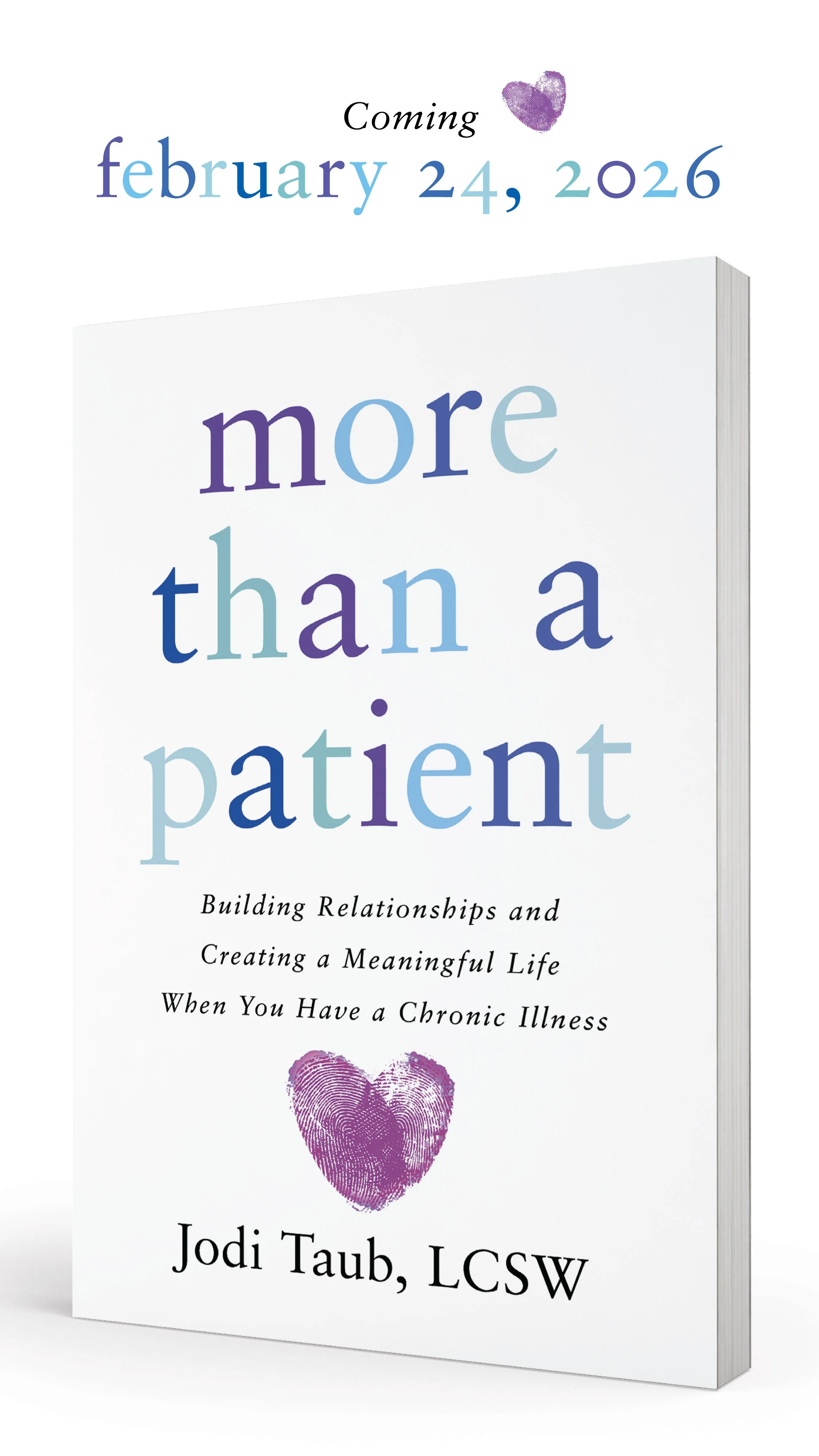 Thrilled to share that a new book by Jodi Taub, LCSW, exploring the intersection of clinic expertise and personal narrative — titled More Than A Patient — is set to release on February 24, 2026.